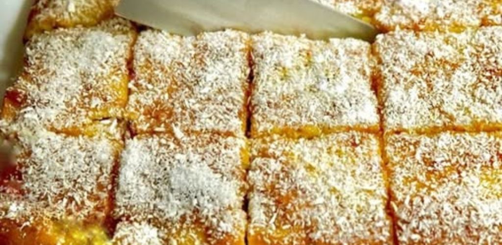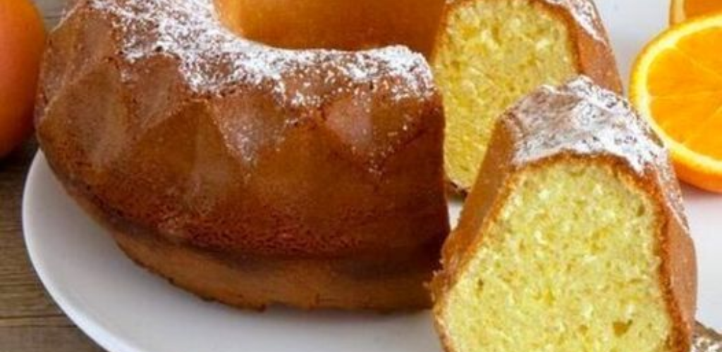 Ingredients 4 eggs 1 cup sugar 1 cup ml oil 1 cup orange juice 2 oranges, the peel 300 g flour 1 packet of baking powder For the glaze: 80 g icing sugar Orange juice Coconut flakes Preparation